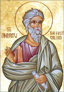 Today, November 30th, we celebrate the memory of St. Andrew the Apostle, the brother of Saint Peter. The Gospel of John tells us that Andrew was the first of the apostles to follow Jesus and it was Andrew who then brought Peter to Jesus. Thus, in the Orthodox Church St. Andrew is called the First-Called. He met his death by martyrdom in the city of Patra in the Peloponnese in Greece. Today this is a busy port, but it is best known for its huge cathedral church of St. Andrew where the relics of the apostle are kept for veneration by the faithful. Andrew was crucified by the Romans – but he requested that his cross not be identical to the cross on which Jesus was crucified. He didn’t feel worthy to be crucified the same way as his Lord. So he was crucified on an X-shaped cross.