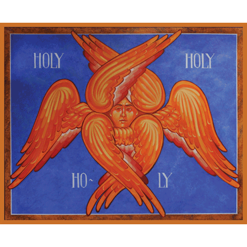 The seraphim have six wings and they call out to one another words that have become part of the Christian Liturgy, the Sanctus in the Roman Mass. In the Orthodox Church, the vision of Isaiah has been incorporated into the Anaphora (the Eucharistic Prayer). In the Liturgy of St. Chrysostom, the following exchange takes place between the presiding priest and the congregation (represented by the choir):