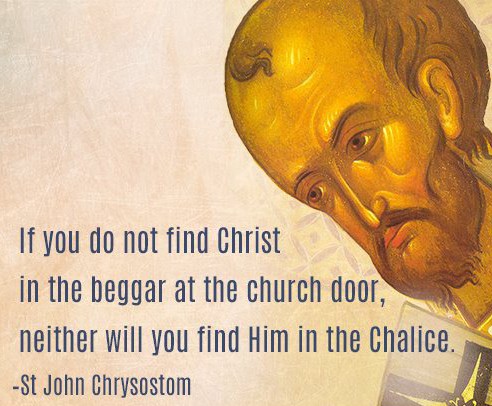 If you cannot find Christ in the beggar at the church door, you will not find Him in the chalice.