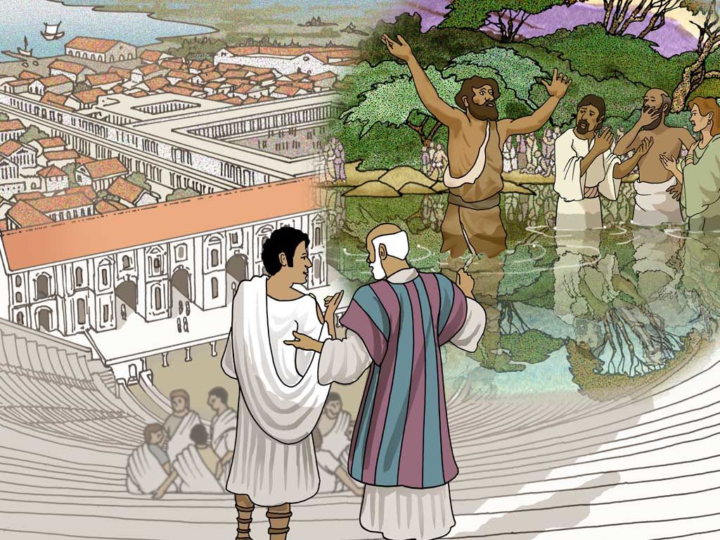 Paul instructs them that John’s baptism was only a baptism of repentance, only to prepare for the one who was coming. Just as John himself said, “After me comes a man who ranks before me, for he was before me.” Interesting here these words of John. He saw deeply into the mystery of Jesus Christ – “he was before me,” yet John was born 6 months before Jesus! Surely John is pointing to an origin beyond human birth. John himself acknowledged that he baptized only with water. Jesus would baptize with the Holy Spirit!