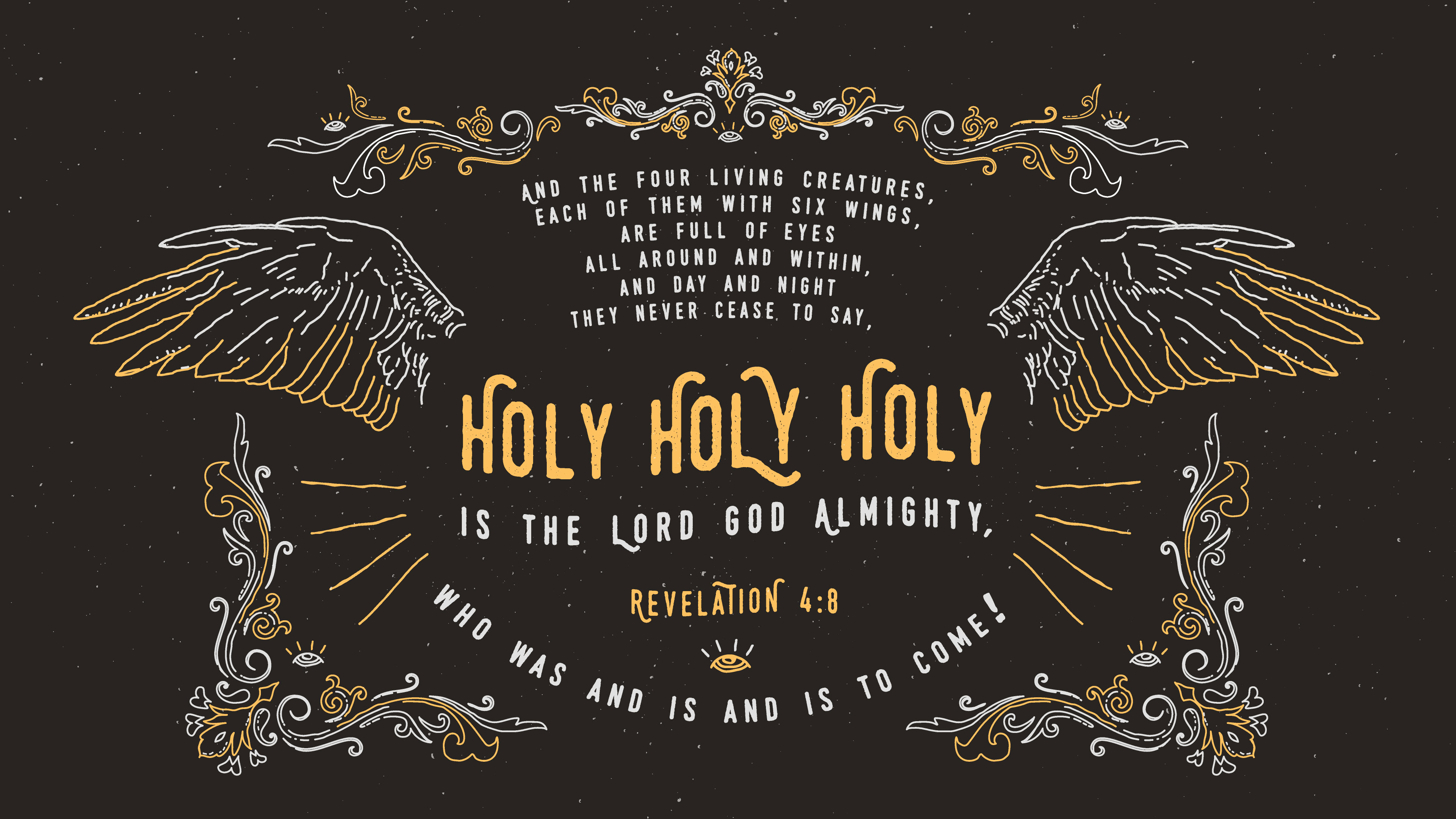 But thank God the Book of Revelation is not only about scenes of destruction. It starts with a dazzling vision of Jesus Christ. The words of verse 8 in chapter 1 are inscribed in red letters around our icon of the Pantokrator Christ in the ceiling of our church: “I am the Alpha and the Omega,” says the Lord God, “who is, and who was, and who is to come, the Almighty [Pantokrator].” Jesus dictates “seven letters” to seven churches in chapters 2 and 3 – which should prompt us and every church to wonder which of the seven churches are we most like, or what kind of letter Jesus would write to our church! Then follows a scene in the next two chapters of Revelation which can only be described as a heavenly liturgy. Indeed, the development of our own Liturgy was greatly influenced by the vision of chapter 4. Our illustrated verse today (Revelation 4:8), in combination with Isaiah 6:3 and Matthew 21:9, became part of a hymn we sing at every Liturgy. It is perhaps a little known or rarely acknowledged fact that our entire Liturgy is permeated with words and phrases taken straight out of Scripture, both Old and New Testaments!