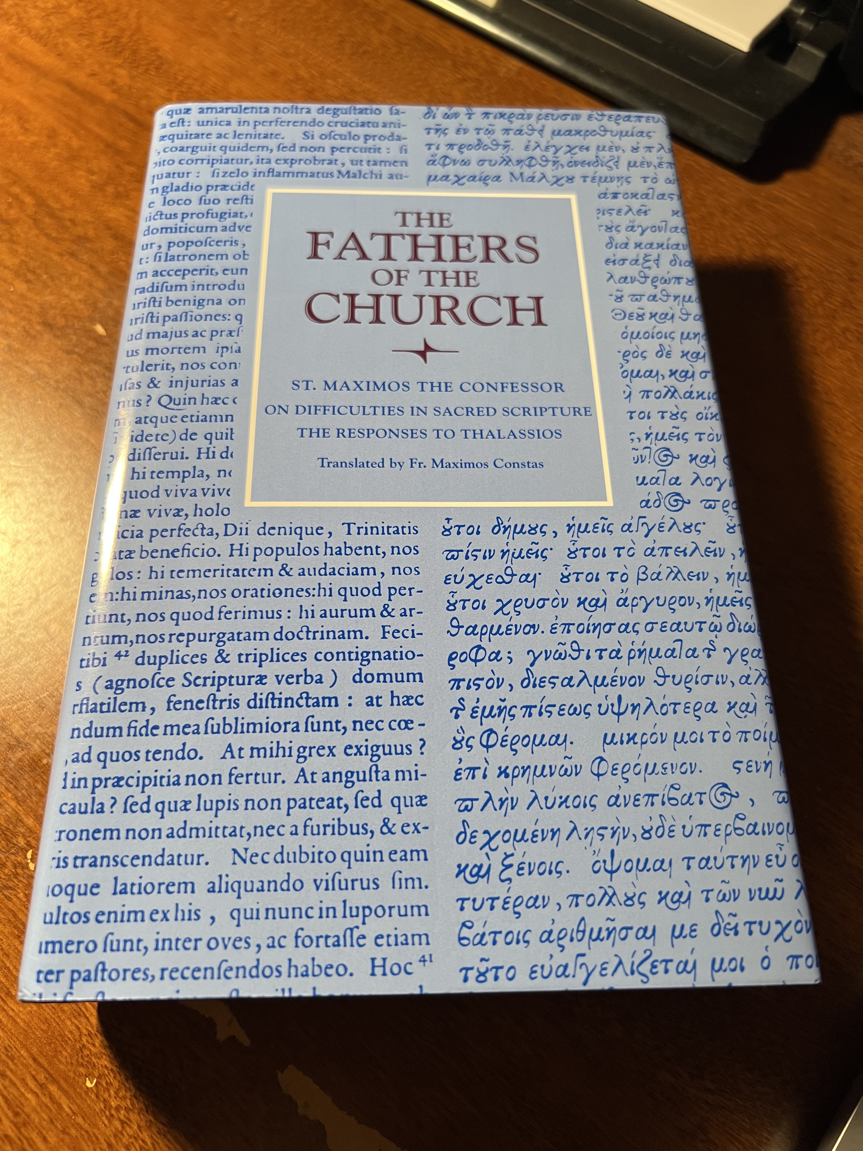 St. Maximos the Confessor, On Difficulties in Sacred Scripture: The Responses to Thalassios, Translated by Fr. Maximos Constas, The Fathers of the Church, Vol. 136, page 268, Catholic University of America Press, 2018.